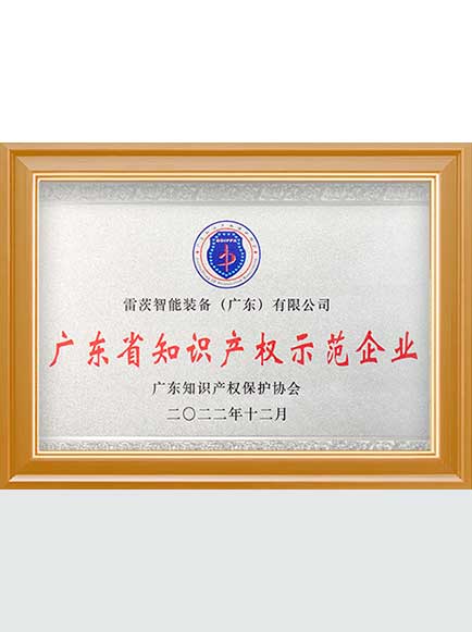 2、雷茨智能裝備(廣東)有限公司榮獲“2022 年度廣東省知識(shí)產(chǎn)權(quán)示范企業(yè)”